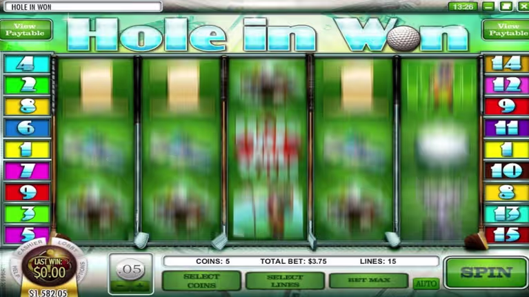 While players occasionally make wagers on specific holes in golf, real-money gamblers playing Hole in Won Slots must make a bet to cash in on any prizes awarded from their time on the reels. Coin sizes in the title range from $0.02 to $1.00 per line, and players have the option to wager up to five coins on each payline. When multiplied by 15 lines, the highest-possible wager in Hole in Won comes in at a tidy $75 per spin of the reels.